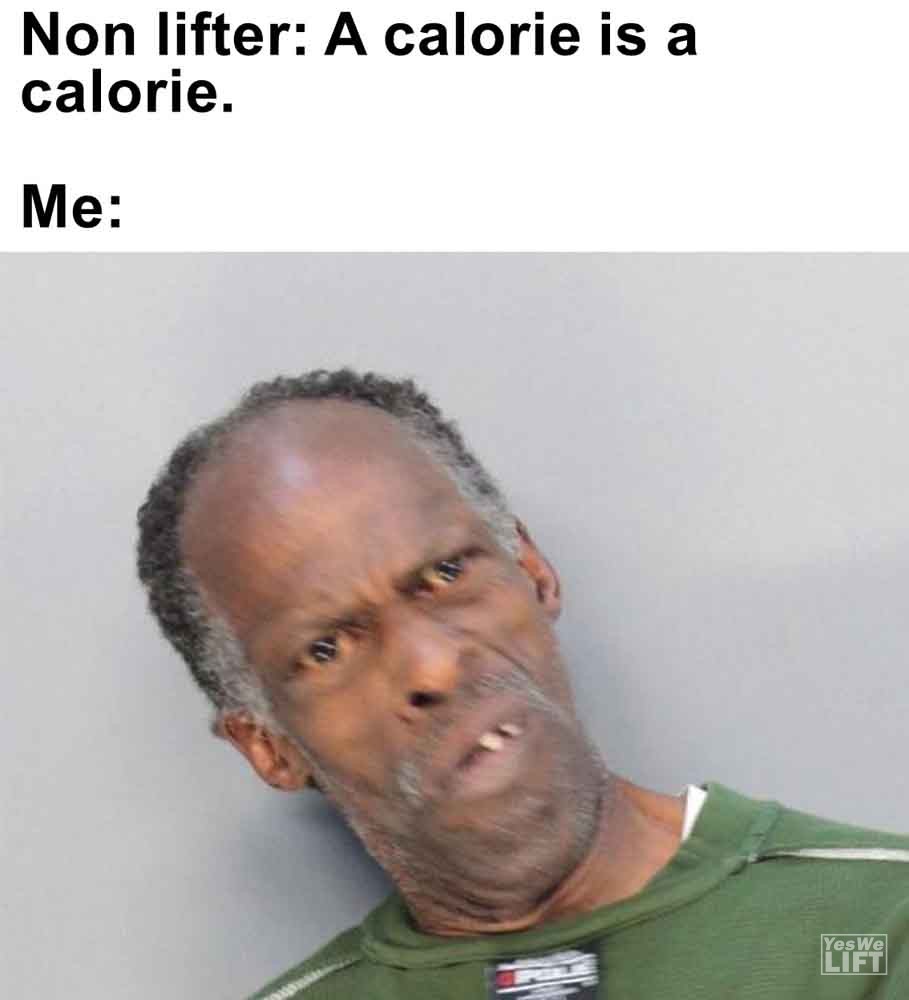 Image, MemesNon lifter a calorie is a calorie. me When your lifting partner suggests you start doing some cardio Me staring at the 4 year old construction worker in jeans benching 5 lbs