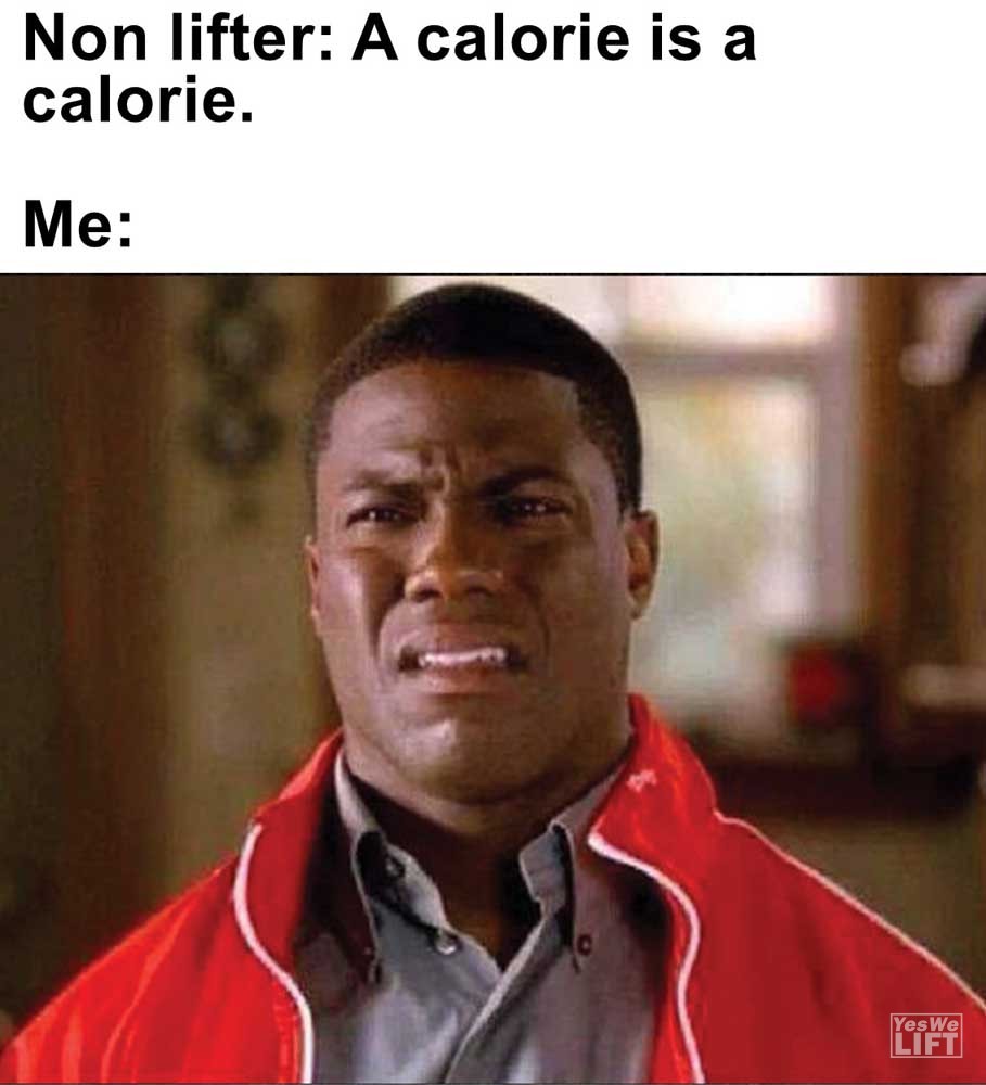 Image, MemesNon lifter a calorie is a calorie. me When they putting on lifting gloves for the leg press Friend i don’t wanna lift heavy cos it’s bad for the joints. me