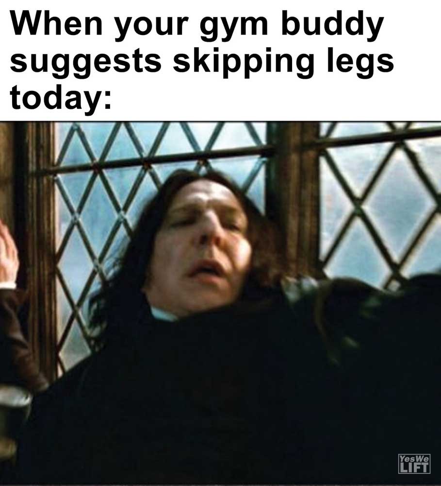Image, MemesWhen your gym buddy suggests skipping legs today Me when i’ve one more of set of squats to go but not sure if i’ve got it in me When a gym newbie offers training advice