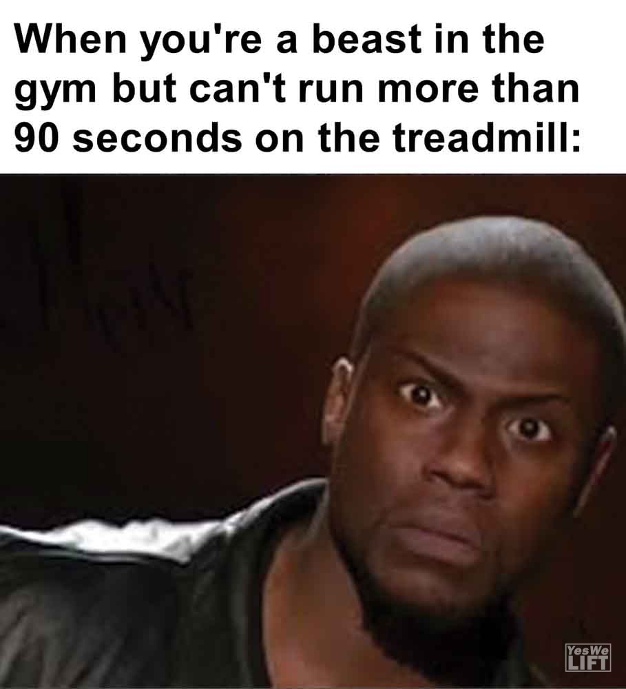 Image, MemesWhen you’re a beast in the gym but can’t run more than 90 seconds on the treadmill When someone tells you they enjoy cardio When the biggest guy in the gym calls you big man