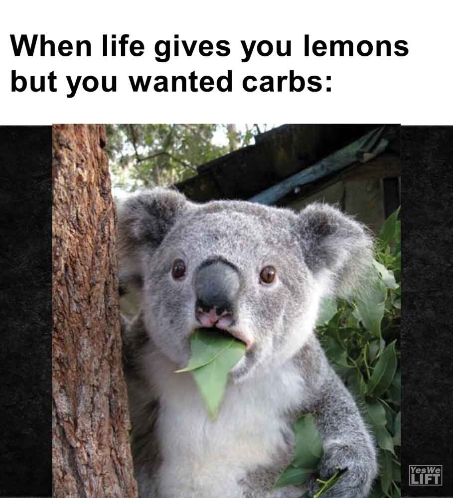 Image, MemesWhen life gives you lemons but you wanted carbs When the joke isn’t funny but was told by your gym crush When a non lifter tells you a calorie is a calorie