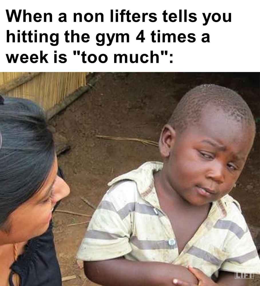 Image, MemesWhen a non lifters tells you hitting the gym 4 times a week is too much When you see your ex with a new partner who doesn’t even lift When you see someone on the leg press with big weights and locking their knees on every rep