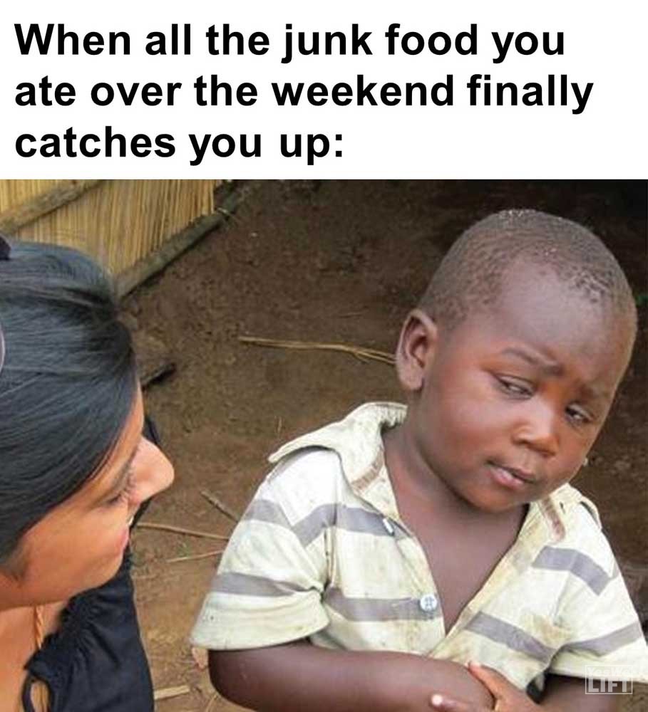 Image, MemesWhen all the junk food you ate over the weekend finally catches you up My face when someone asks me to skip the gym and do something else When they bragging about their pb on leg press but their knees hurt when they squat