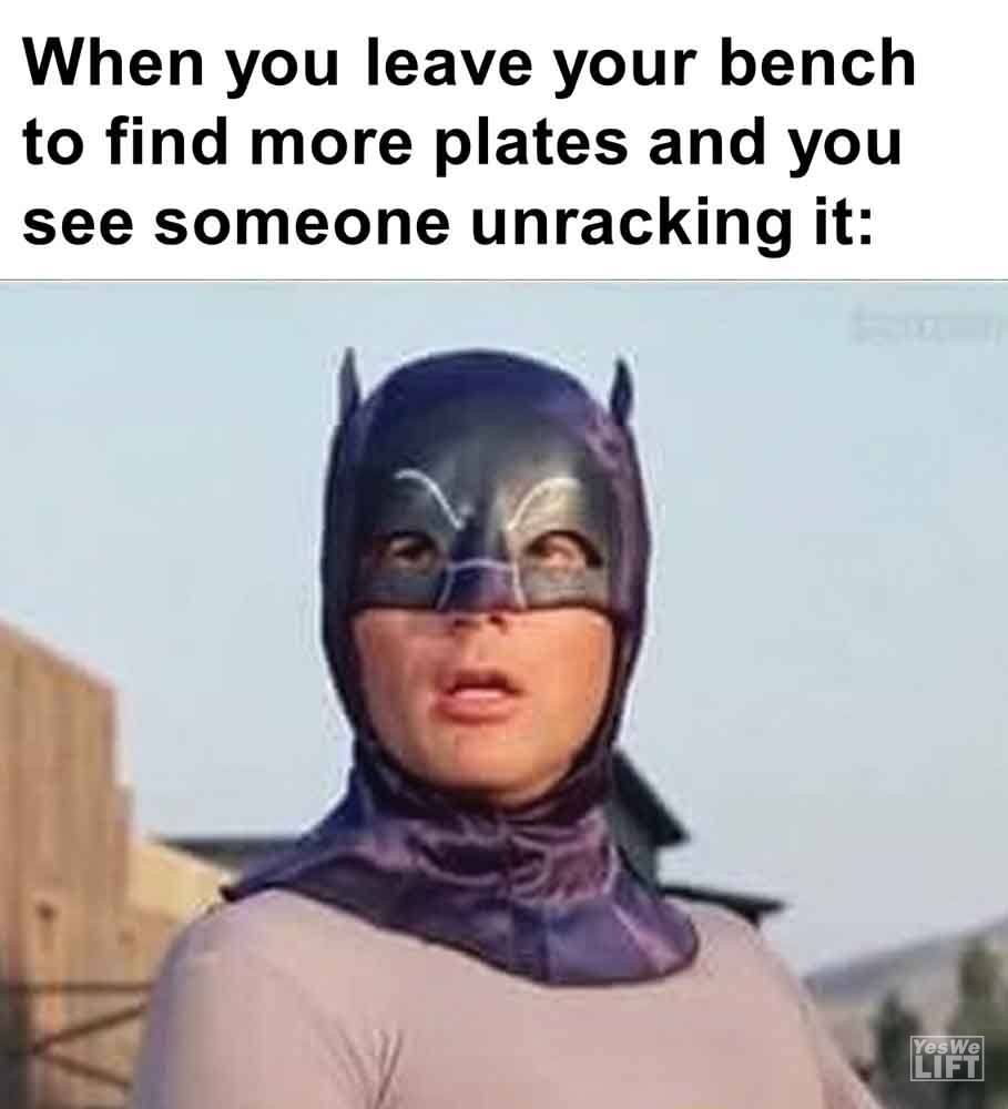 Image, MemesWhen you leave your bench to find more plates and you see someone unracking it When it took 6 days to get over stiff legs and you realise today is squats When someone has been lifting for a week and tells you they wanna quit