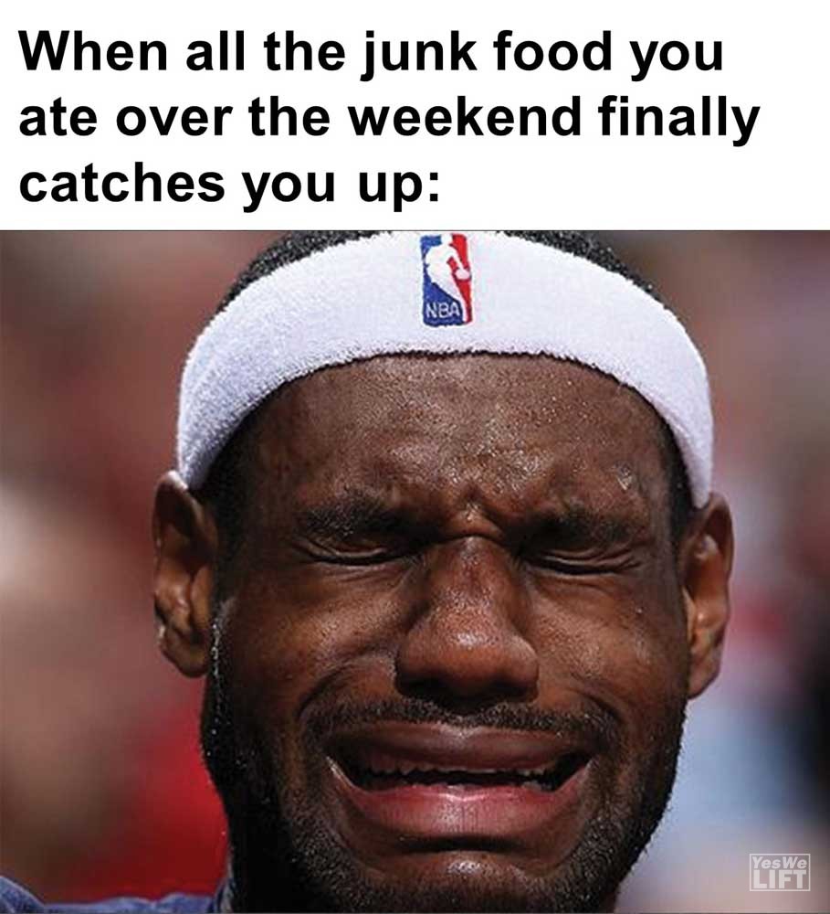 Image, MemesWhen all the junk food you ate over the weekend finally catches you up When someone has been lifting for a week and tells you they wanna quit When you see someone curling in the squat rack
