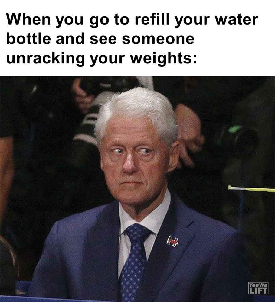 Image, MemesWhen you go to refill your water bottle and see someone unracking your weights Friend fancy a slice of pizza me, who’s on zero carbs Non lifter you’re getting too big. me