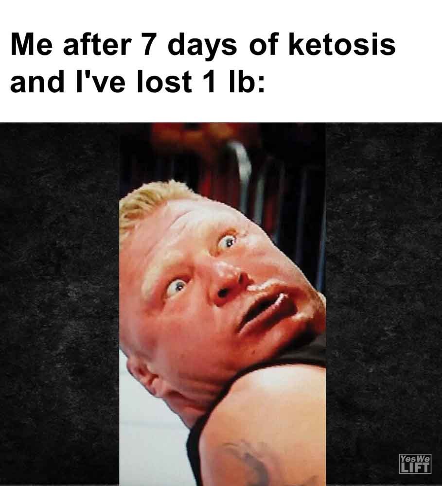 Image, MemesMe after 7 days of ketosis and i’ve lost 1 lb Me realizing i’m now bigger than the dude who introduced me to the gym When i’ve managed to go the whole day without breaking my diet