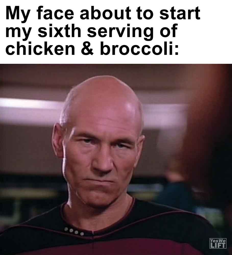 Image, MemesMy face about to start my sixth serving of chicken broccoli When people who don’t lift tell you you’re getting too big When your gym buddy goes to another gym