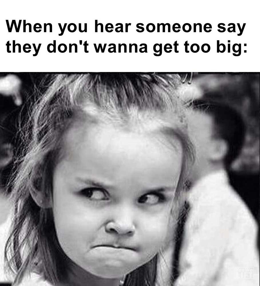 Image, MemesWhen you hear someone say they don’t wanna get too big When someone has been lifting for a week and tells you they wanna quit When you see a hot girl in the gym loading up the 45’s