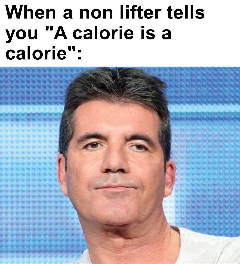 Image, MemesWhen a non lifter tells you a calorie is a calorie Everyone else having seconds. me When some says you’re so lucky not being fat