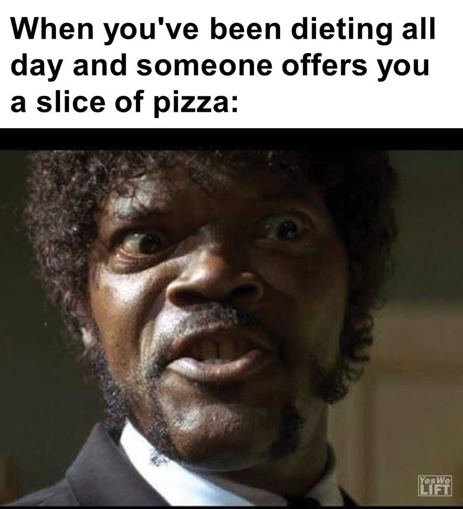 Image, MemesWhen you’ve been dieting all day and someone offers you a slice of pizza When the pre starts kicking way to hard and you’re trying not to freak out When you get to the gym and it’s closed