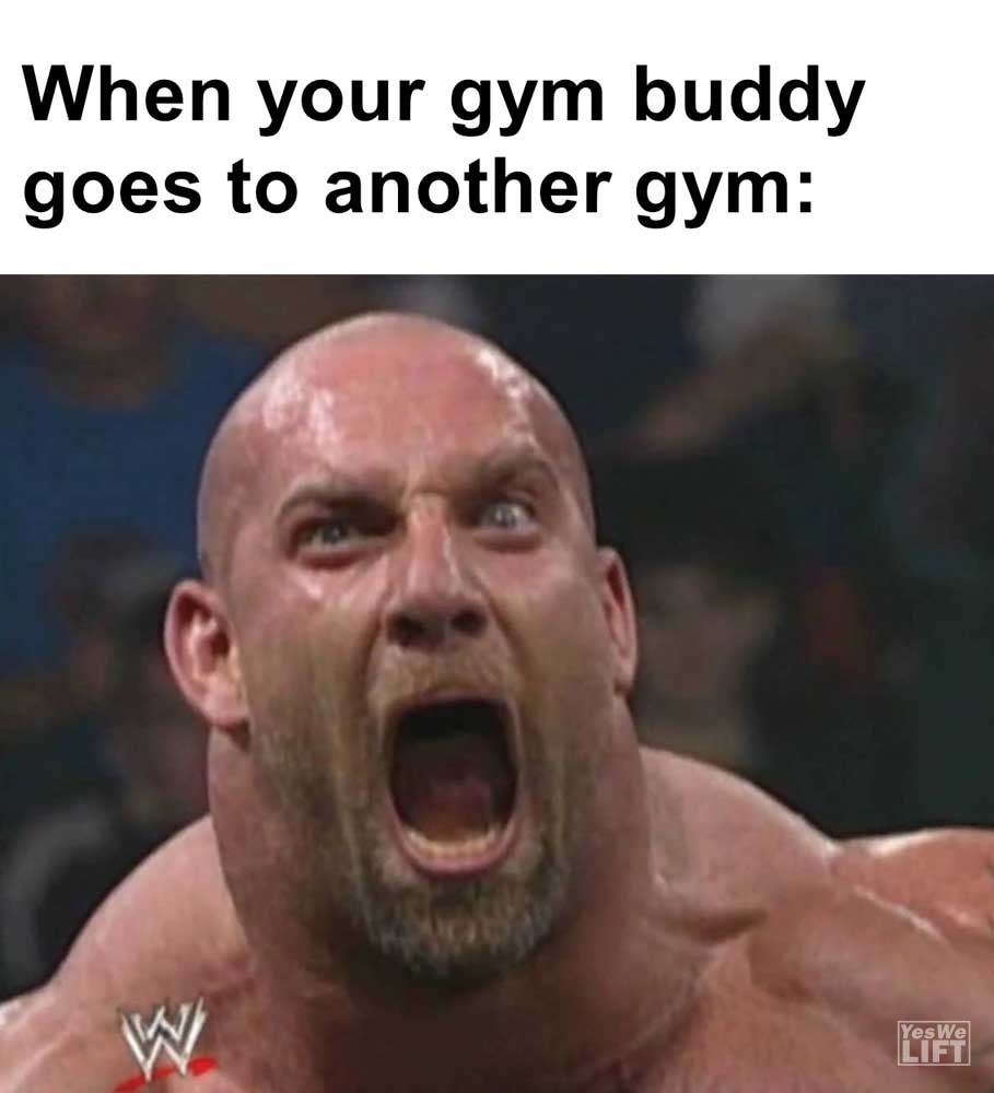 Image, MemesWhen your gym buddy goes to another gym When you’ve been lifting for 2 hours and your buddy wants to finish off with 5 mins of cardio When you ask your personal trainer for some honest feedback and they’re too honest