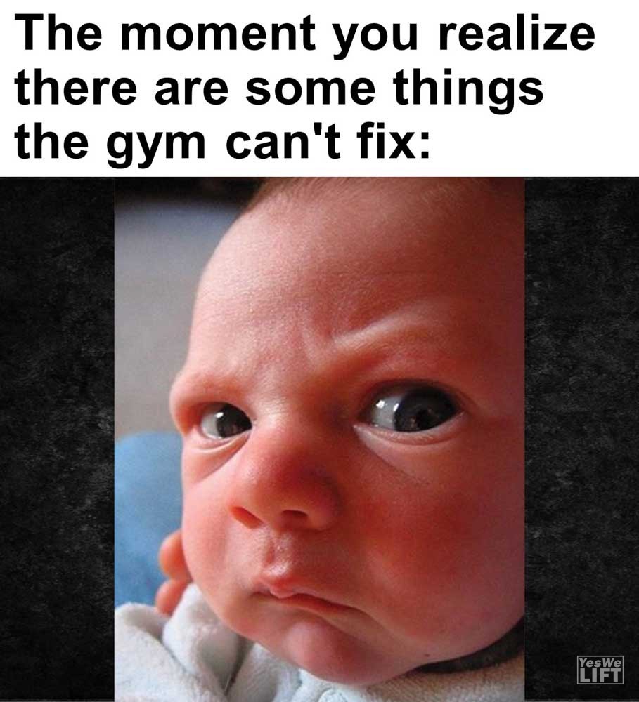 Image, MemesThe moment you realize there are some things the gym can’t fix When someone says your gainz are down to genetics The face you make when you see someone with bad form