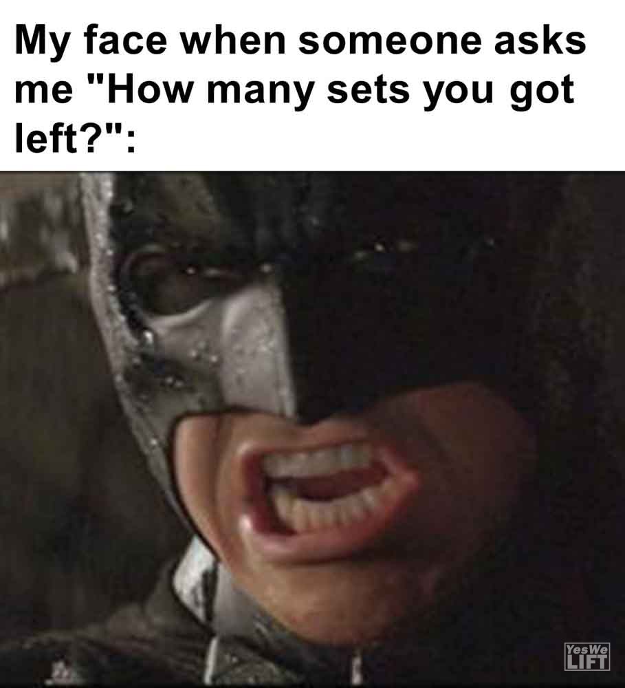 Image, MemesMy face when someone asks me how many sets you got left When all the junk food you ate over the weekend finally catches you up When its leg day but you spot an open bench