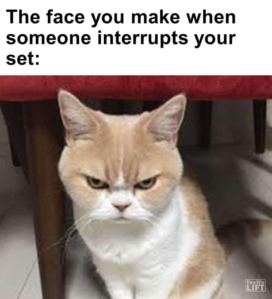 Image, MemesThe face you make when someone interrupts your set When you see high school kids recording tiktok videos at the gym When your gym crush leaves just as you pull up