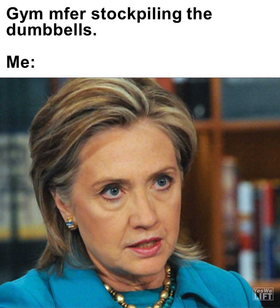 Image, MemesGym mfer stockpiling the dumbbells. me When a non lifters tells you hitting the gym 4 times a week is too much When it took 6 days to get over stiff legs and you realise today is squats