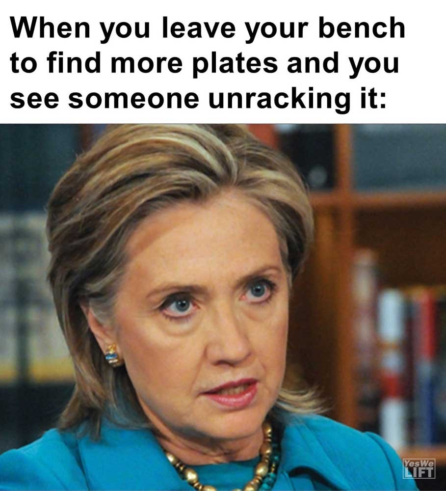 Image, MemesWhen you leave your bench to find more plates and you see someone unracking it When you see someone at the gym stockpiling the dumbbells When the biggest guy in the gym calls you big man