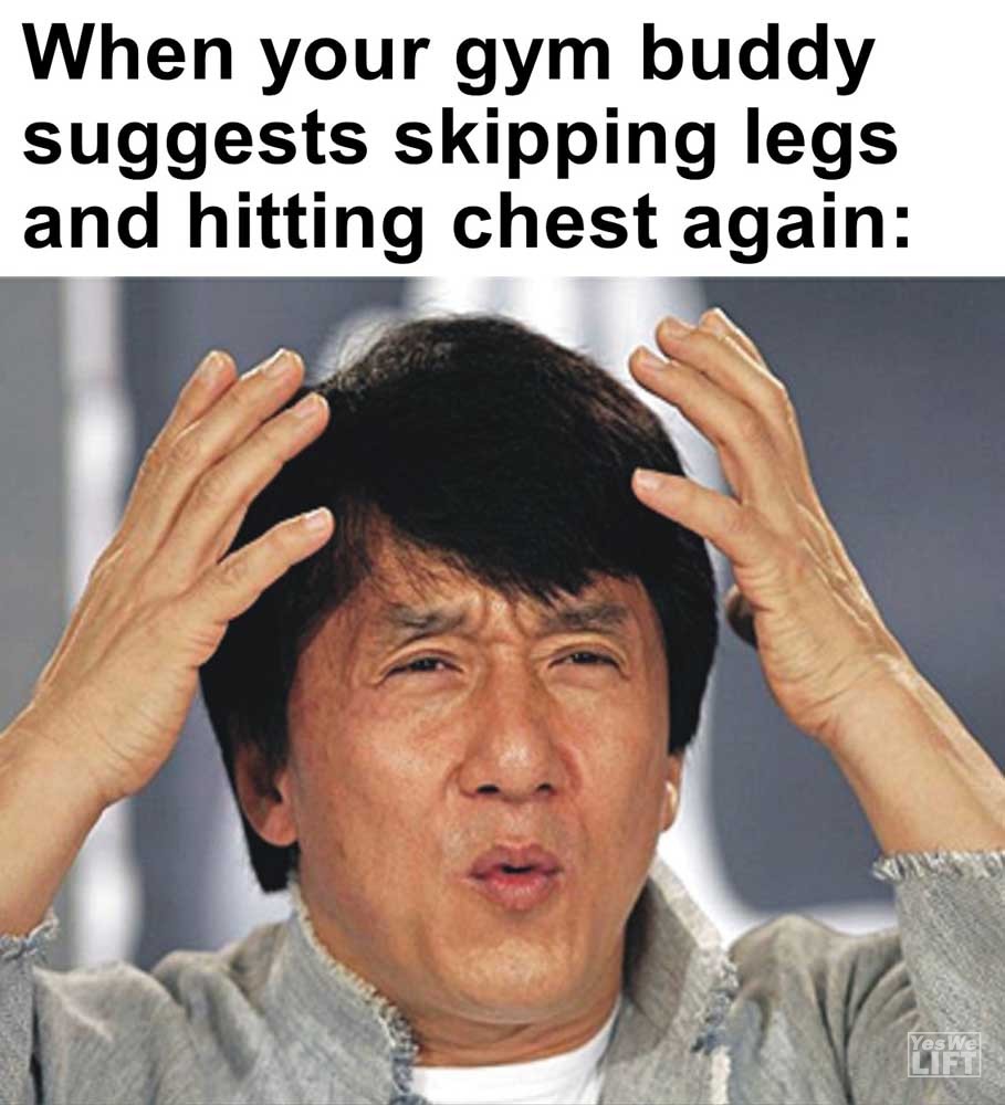 Image, MemesWhen your gym buddy suggests skipping legs and hitting chest again When you see someone in the gym reracking their dumbbells When you’ve been eating all day and not sure if you’re disgusted with yourself or should finish with something