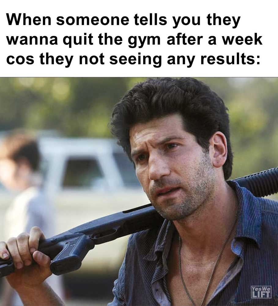 Image, MemesWhen someone tells you they wanna quit the gym after a week cos they not seeing any results When you see someone training with perfect form When a weight that was too much for you last month is now easy