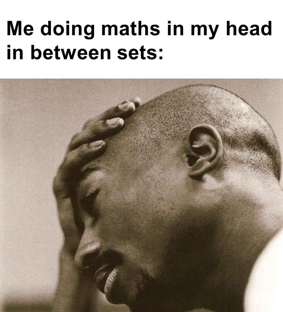 Image, MemesMe doing maths in my head in between sets Friend i don’t wanna lift heavy cos it’s bad for the joints and i don’t wanna get too big. me My face before my last squat set, wondering if it’s all worth it