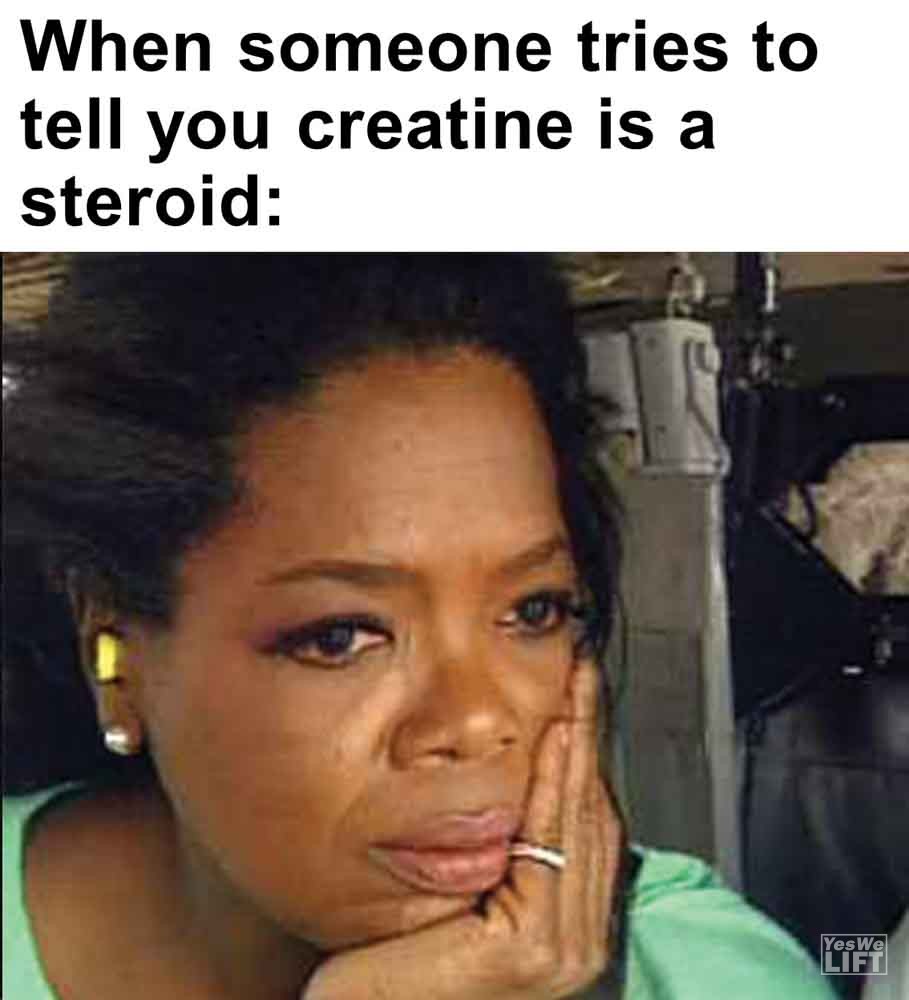 Image, MemesWhen someone tries to tell you creatine is a steroid When you’ve been lifting for years and someone suggests you start working out When your gym buddy suggests skipping legs today