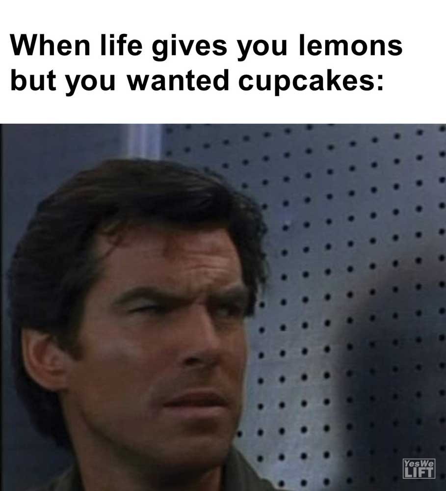 Image, MemesWhen life gives you lemons but you wanted cupcakes When there’s no one in the gym strong enough to spot you When the lift is broken and yesterday was squats