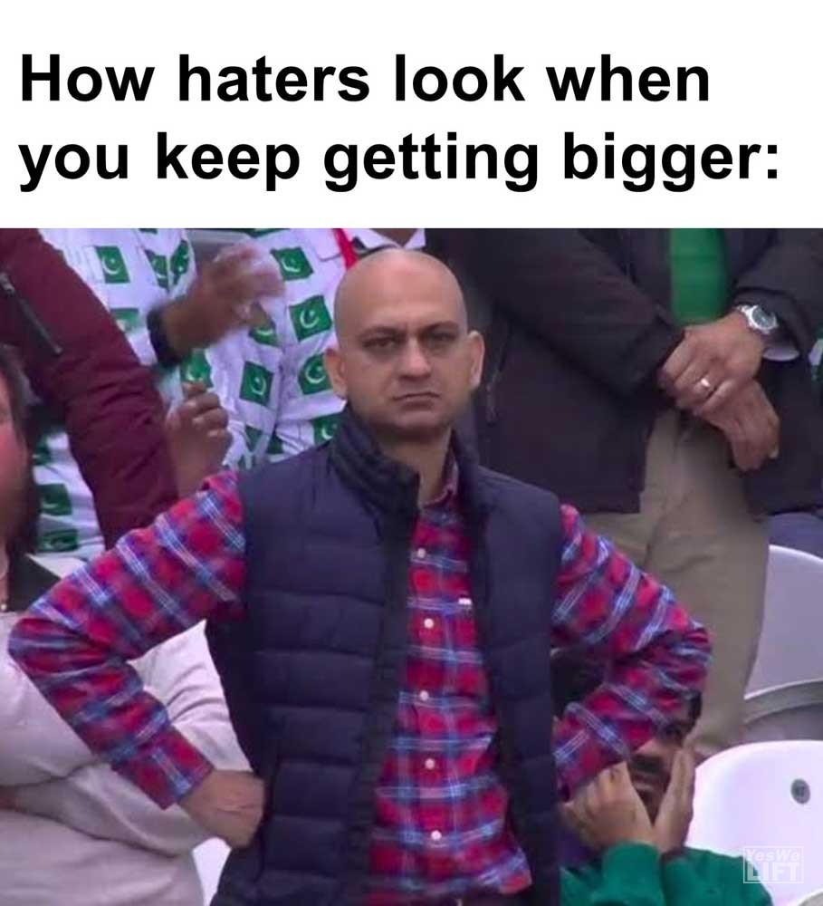 Image, MemesHow haters look when you keep getting bigger When you’re back from the water fountain and someone’s taken your bench Me realising i have less than 3 weeks to get in shape for my hols