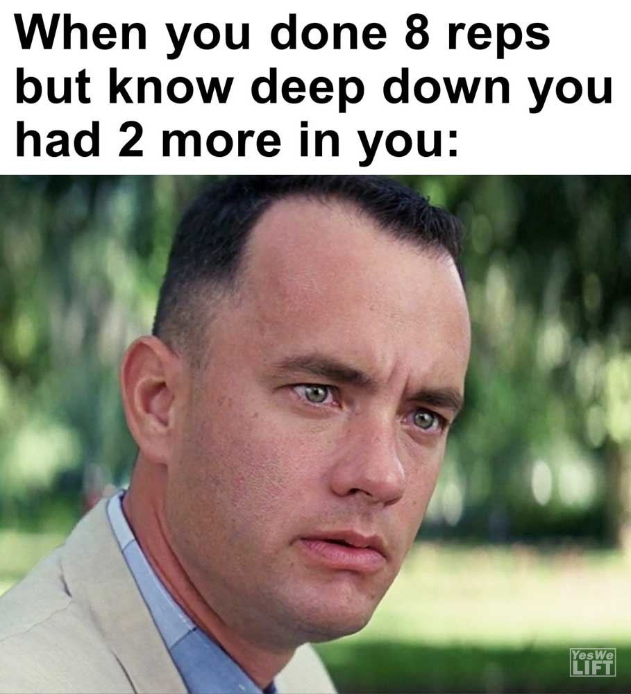 Image, MemesWhen you done 8 reps but know deep down you had 2 more in you When you overplayed every song in your gym playlist and now nothing gets you hype When your gym buddy suggests skipping legs and hitting chest again