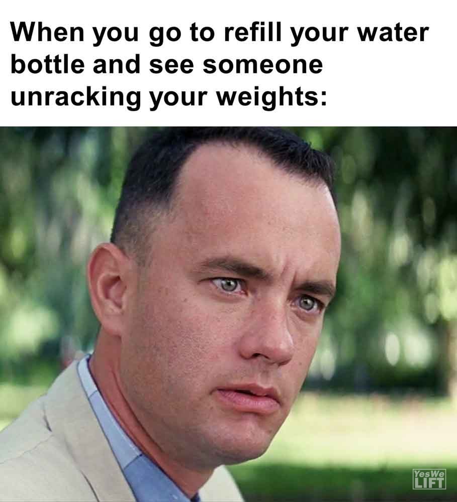 Image, MemesWhen you go to refill your water bottle and see someone unracking your weights Non lifter you workout too much. me Me when someone tells me you’ve lost some size since i last saw you