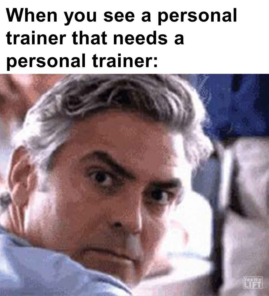 Image, MemesWhen you see a personal trainer that needs a personal trainer Newbie squatting to parallel is half repping. me When a gym newbie offers training advice