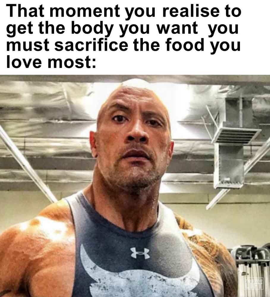 Image, MemesThat moment you realise to get the body you want you must sacrifice the food you love most When everyone else is eating cookies and other delicious shit When some says you’re so lucky not being fat