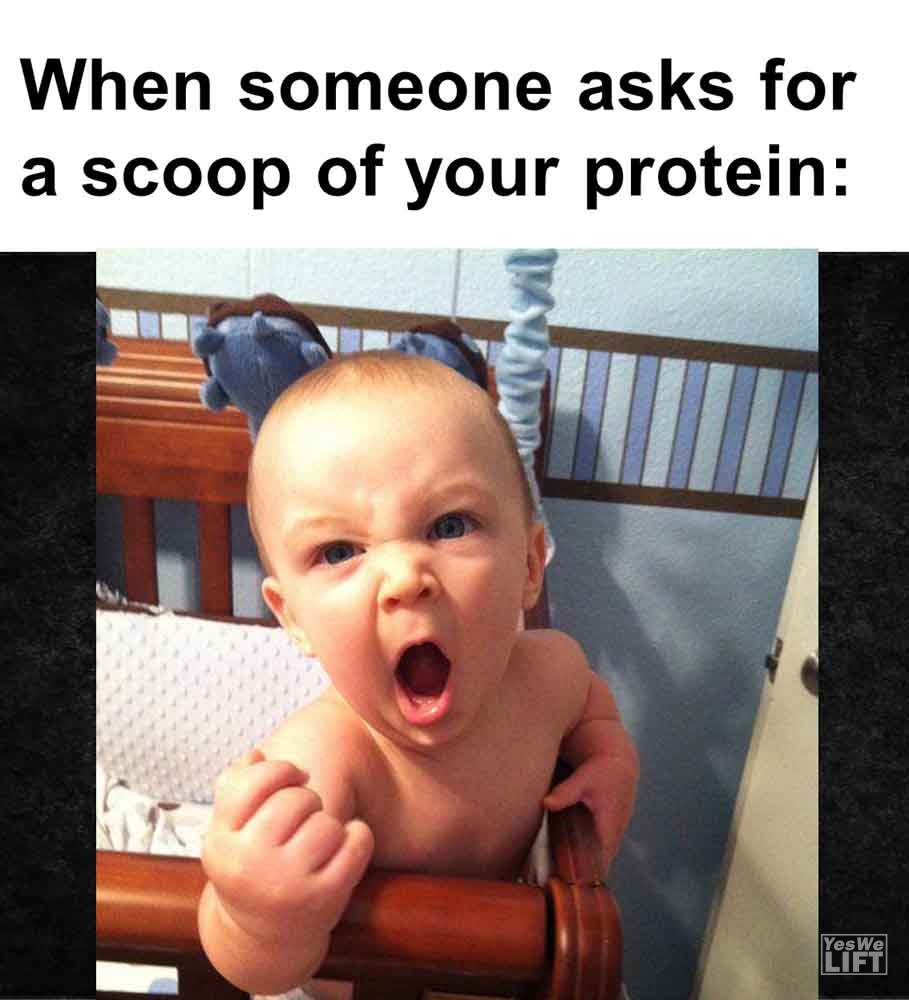 Image, MemesWhen someone asks for a scoop of your protein Me fully determined to bench two plates. my shoulders When you hear people say they don’t go to the gym cos they don’t wanna get bulky