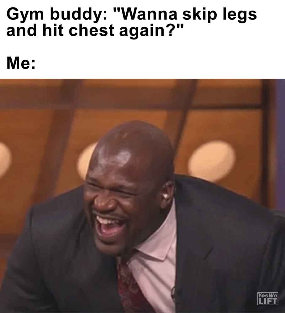Image, MemesGym buddy wanna skip legs and hit chest again me When your friend complains about not getting the results they want and you see them texting and talking in b When someone says they don’t train on fridays