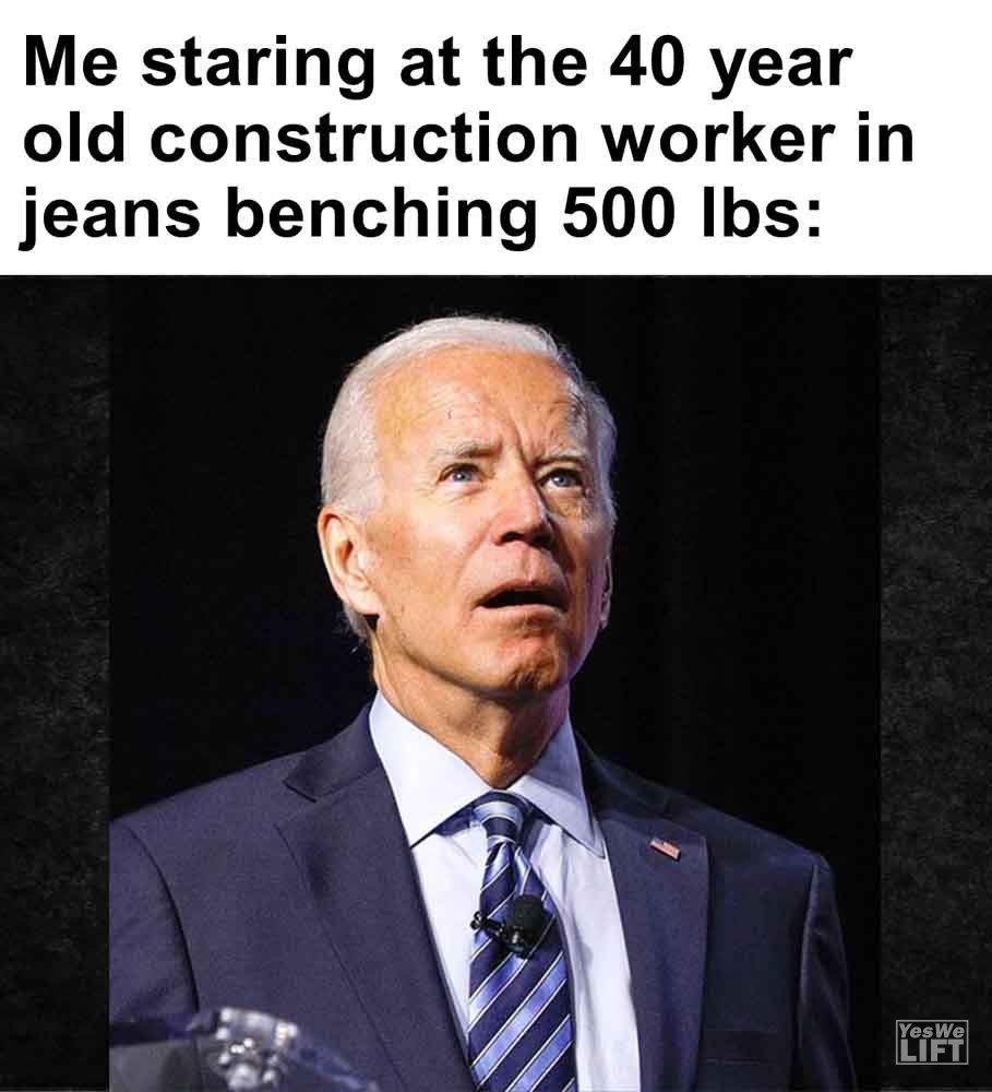 Image, MemesMe staring at the 40 year old construction worker in jeans benching 500 lbs The face your gym partner makes when you tell them how many sets they got left Me, looking at bread