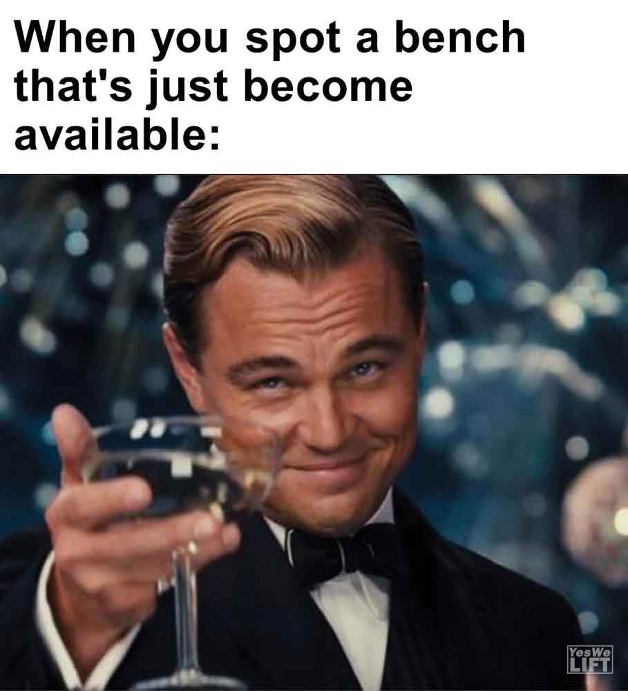 Image, MemesWhen you spot a bench that’s just become available When it’s chest day but you remember it’s actually legs day The face you make when you see someone with bad form