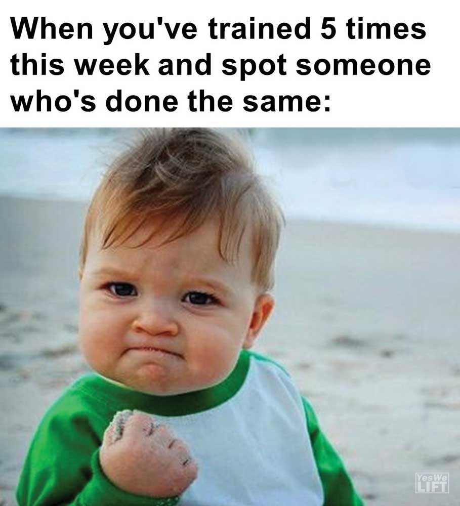 Image, MemesWhen you’ve trained 5 times this week and spot someone who’s done the same When a non lifter tells you a calorie is a calorie The face your gym partner makes when you tell them how many sets they got left