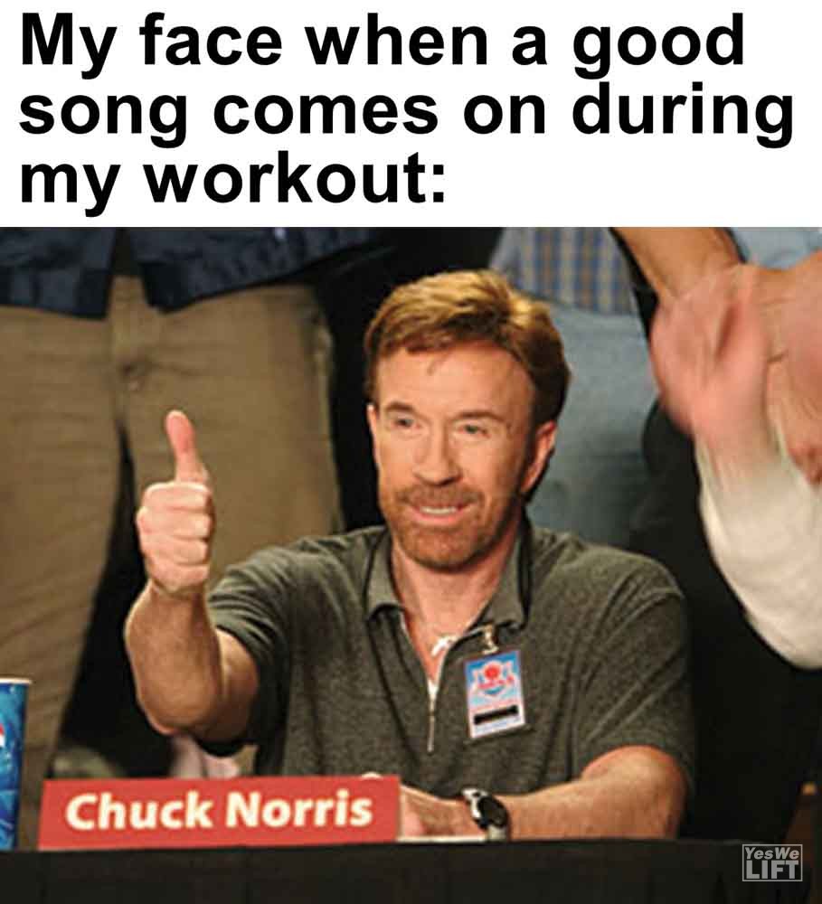 Image, MemesMy face when a good song comes on during my workout The face your gym partner makes when you tell them how many sets they got left The guy at the protein company burring the scoop at the bottom