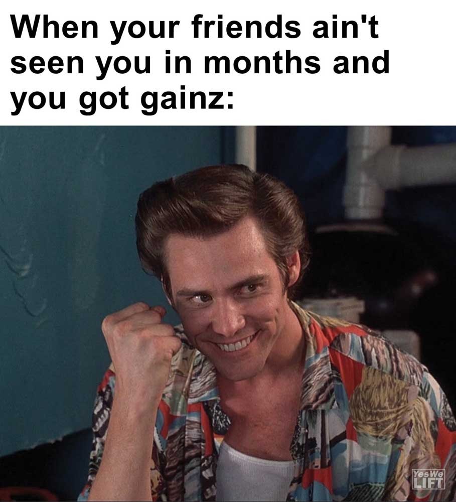 Image, MemesWhen your friends ain’t seen you in months and you got gainz Sits down at a machine at the gym last person was weaker than me The face you make when someone interrupts your set