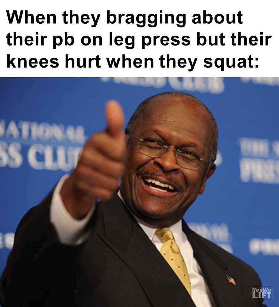 Image, MemesWhen they bragging about their pb on leg press but their knees hurt when they squat When it’s rest day but all you’re thinking about is super setting squats and dumbbell curls Me fully determined to bench two plates. my shoulders