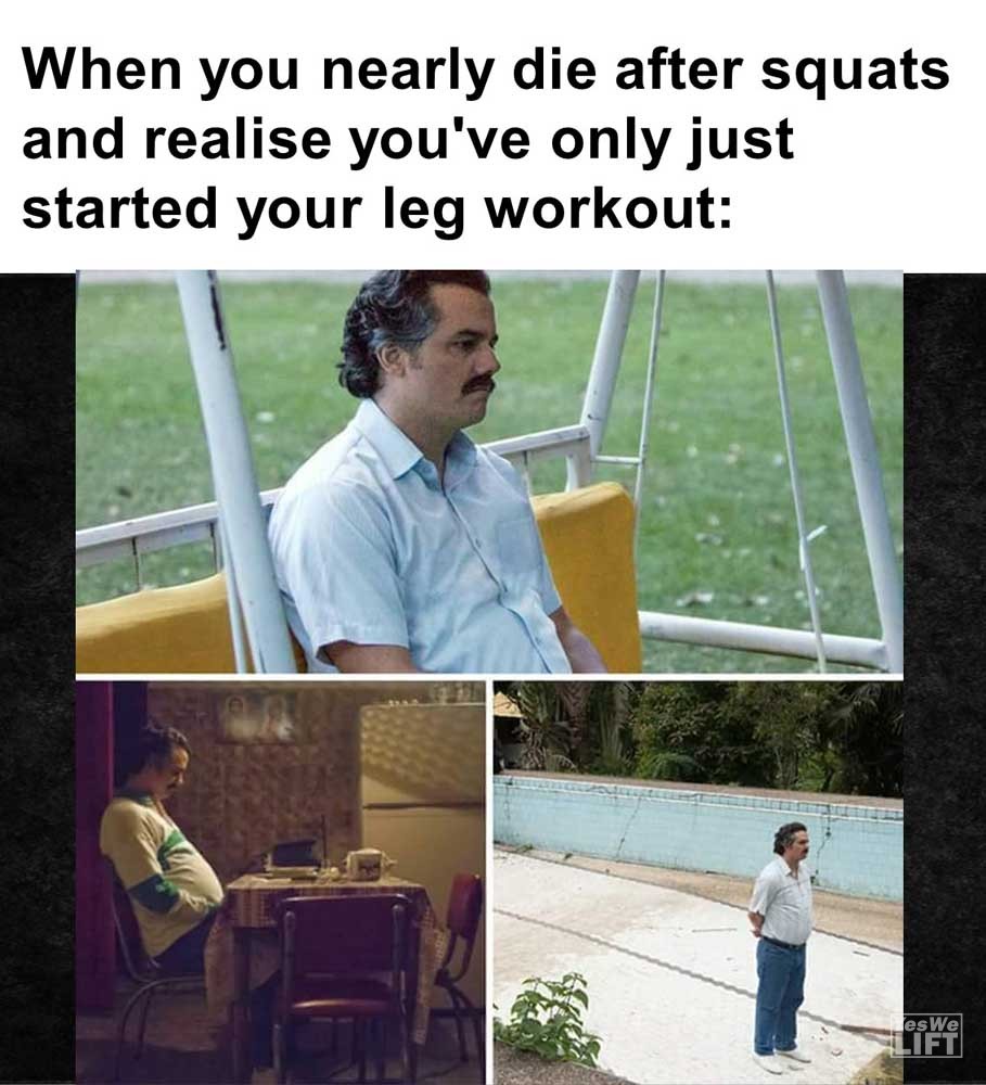 Image, MemesWhen you nearly die after squats and realise you’ve only just started your leg workout When you’ve been lifting for 2 hours and your buddy wants to finish off with 5 mins of cardio Gym buddy wanna skip legs and hit chest again me