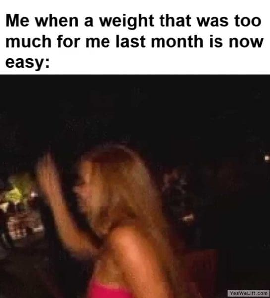 Me when a weight that was too much for me last month is now easy