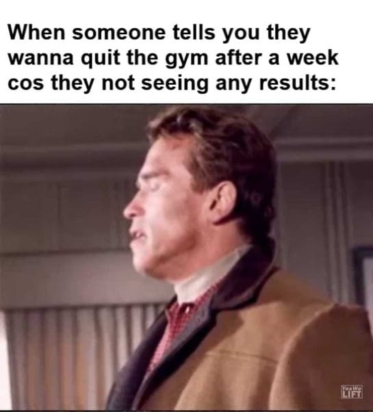 When someone tells you they wanna quit the gym after a week cos they not seeing any results