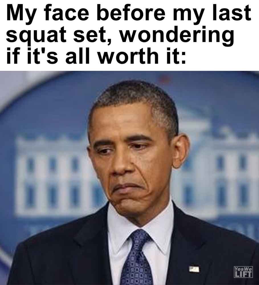 Image, MemesMy face before my last squat set, wondering if it’s all worth it When you do 45 mins of cardio for 3 months straight and lose 5 pounds just to gain it all back after one Showing off is the fools idea of glory