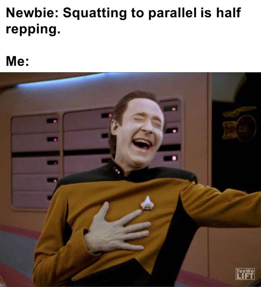 MemesNewbie squatting to parallel is half repping. me Me i’ll just do a little cardio. my gains Gym employee your deadlifting grunts are disturbing others. me