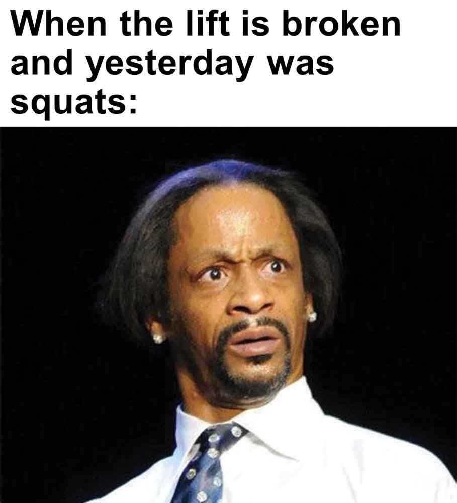 MemesWhen the lift is broken and yesterday was squats Sits down at a machine at the gym last person was weaker than me When you leave your bench to find more plates and you see someone unracking it