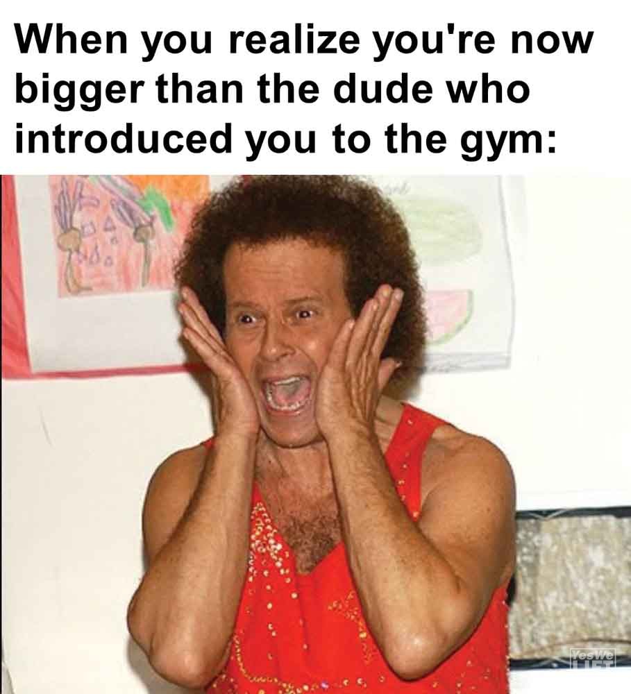 Image, MemesWhen you realize you’re now bigger than the dude who introduced you to the gym When someone suggests there’s life outside the gym When your gym crush leaves just as you pull up