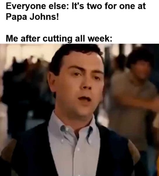 Everyone else it’s two for one at papa johns me after cutting all week