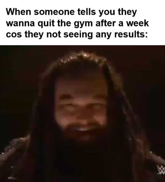 When someone tells you they wanna quit the gym after a week cos they not seeing any results