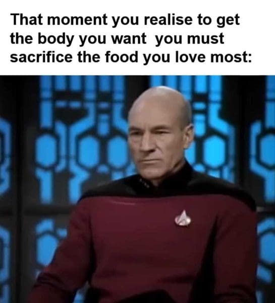 That moment you realise to get the body you want you must sacrifice the food you love most