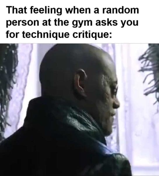 That feeling when a random person at the gym asks you for technique critique